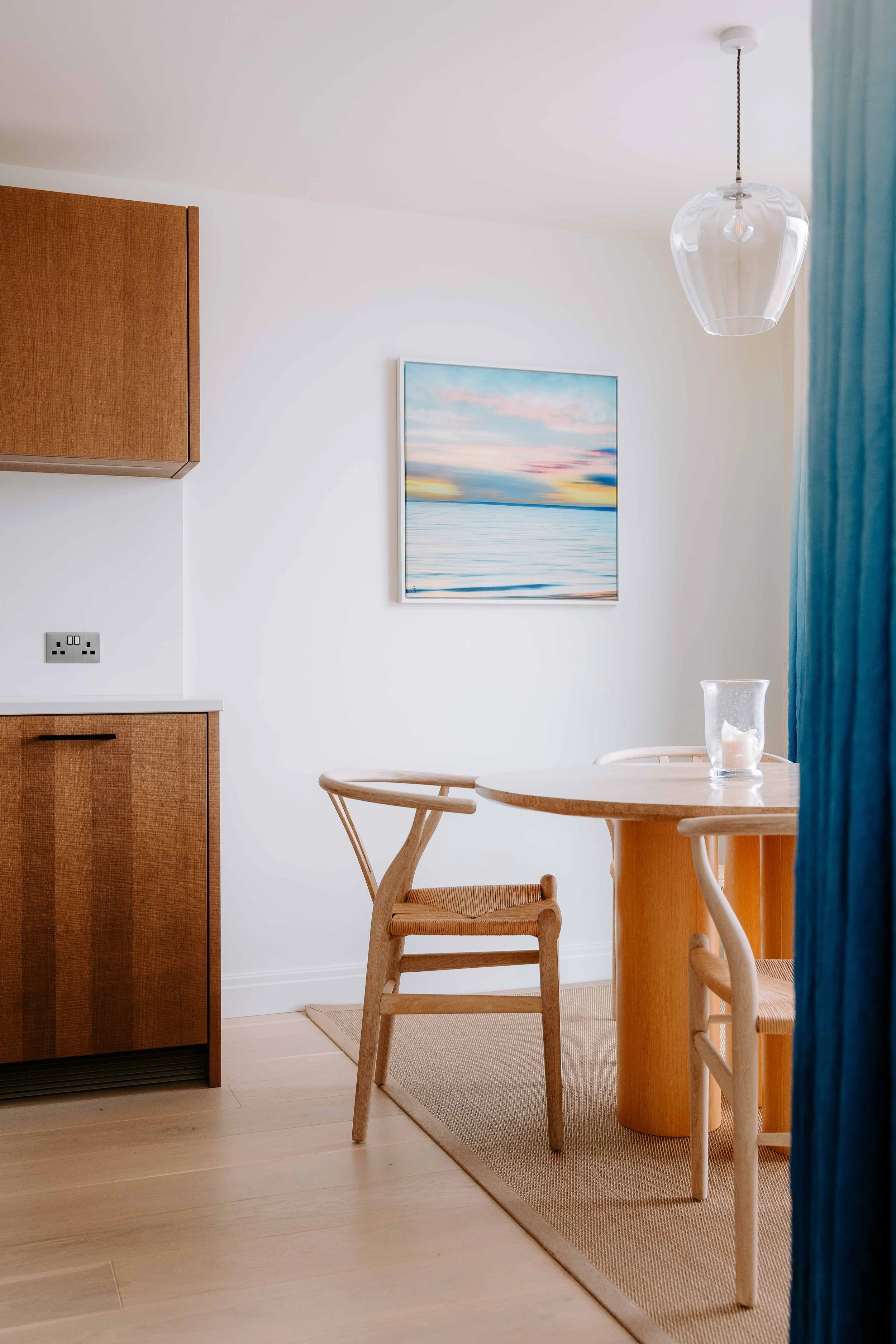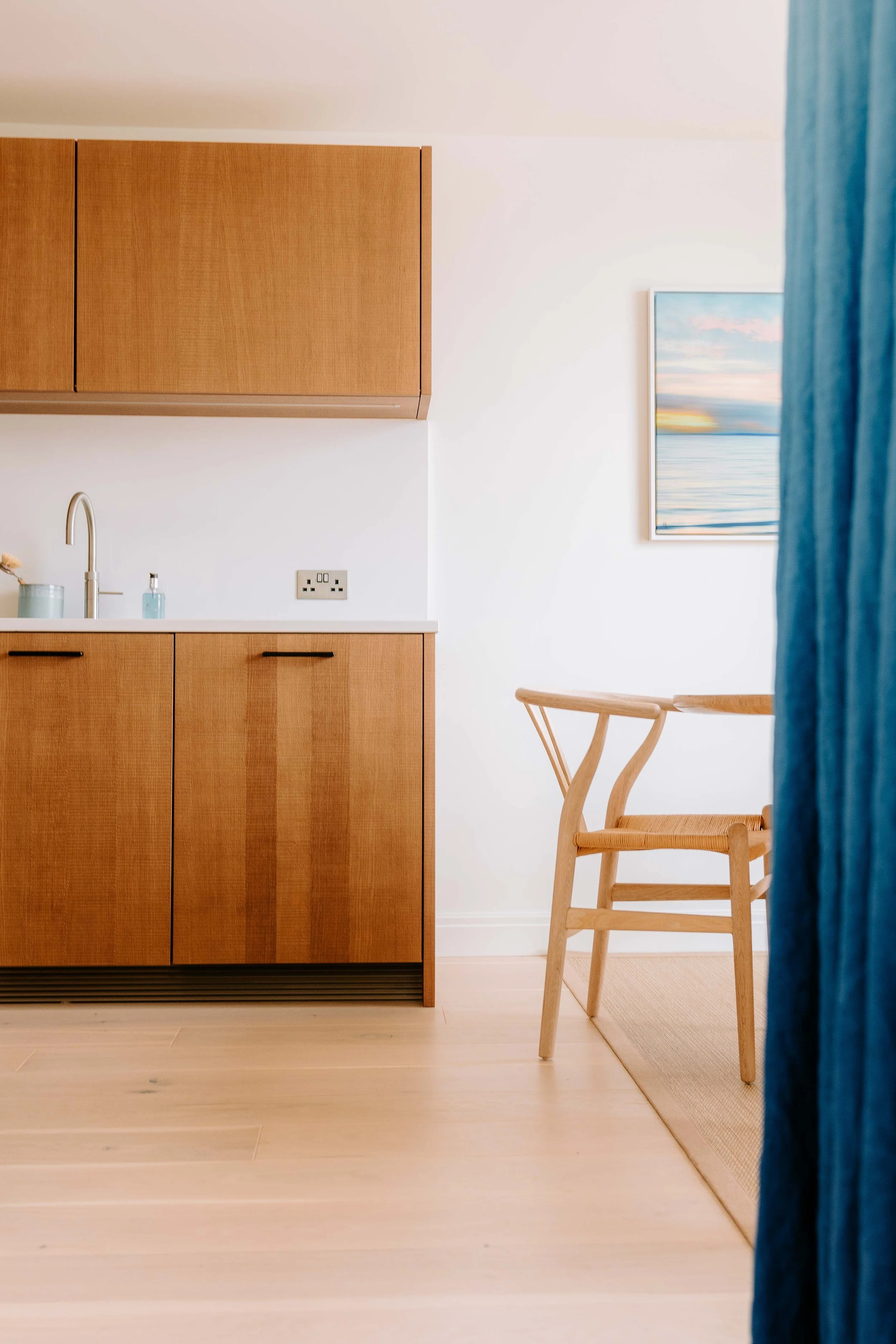 These interior photographs were captured at The Reach Apartment, a beautifully designed coastal retreat just moments from South Sands Beach in Salcombe, Devon. I was commissioned to showcase the apartment’s bright, contemporary interiors — highlighting its open-plan living space, elegant finishes, and calming seaside palette.